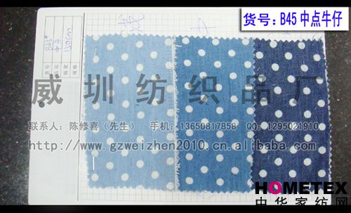織物組織:平紋 幅寬:150cm 品名:純棉牛仔 密度:64*47 水洗工藝:砂洗 貨號:B45中點牛仔 重量:* 具體用途:襯衫、休閑服、工作服、褲裝、時裝 別名:B45中點 印染工藝:染色 成分及含量:100%棉 主要用途:服裝用布 ============================================================= 以上產品全部現貨供應,可隨時提供樣布卡和現貨,隨時發貨。所有產品全部是廠家直銷價,我們承諾:以超低利潤營銷,我們只求銷售量。為保證您的利益,我司建議您在采購前先確認我們的品質樣與顏色樣后再拿大貨,期待與您的真誠合作。因產品種類較多,具體參考未盡詳盡,如有需要,請您與我們聯系。    瑞豐紡織(中大旗艦店)坐落于國內最大的紡織面料產業中心—廣州中大,是一家專業銷售面料的廠家直銷商。主要經營產品有:全棉凈色、仿記憶絲面料、全棉(TC)色織等,面料品種花達上千余種,所有產品全部現貨經營。   我們面料的品質來源于:1、采用國內外優質的原材料;2、使用精良的生產工藝和設備;3、完善的生產質量管理體系。我們具有開發和創新品種的強烈意識和優越條件,并根據客戶需求與市場變化時時推出潮流面料。憑著多年的專業行業經驗,根據客戶需求,不論客戶在全國任何地方,只要提供小樣,就可在一兩天時間內輕松獲得所需面料的信息。 批發說明供應商支持混批 。 ============================================================= 有意請加QQ:1295021910或電話聯系。 公司名稱:威圳紡織品廠 聯系人:陳修喜先生 手機:13650817858 網址:http://www.gzweizhen2010.cn.alibaba.com =============================================================