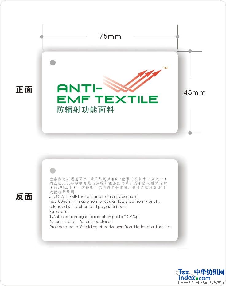 防輻射布料;防輻射手機袋;防輻射面料;防輻射窗簾;防輻射屏蔽布料;防輻射屏蔽面料;防輻射屏蔽布;電磁輻射防護布料;電磁屏蔽布;防輻射手機套;防輻射內衣面料,防輻射覆蓋物;防輻射工作服;防輻射紗線;導電線;電磁屏蔽紗線、導電紗線;防輻射材料;防低頻磁場材料;低頻電磁場屏蔽材料;防電磁場布料;電磁場防護材料,電磁場屏蔽材料;低頻磁場防護材料;電磁輻射防護材料;電磁輻射屏蔽材料,手持式電磁波輻射測試儀